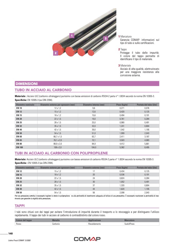 rapidamente. Il tappo dei tubi in acciaio al carbonio è contraddistinto dal colore rosso.