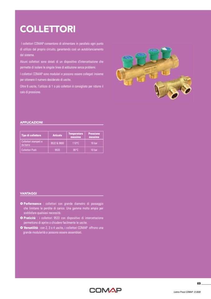 I collettori COMAP consentono di alimentare in parallelo ogni punto