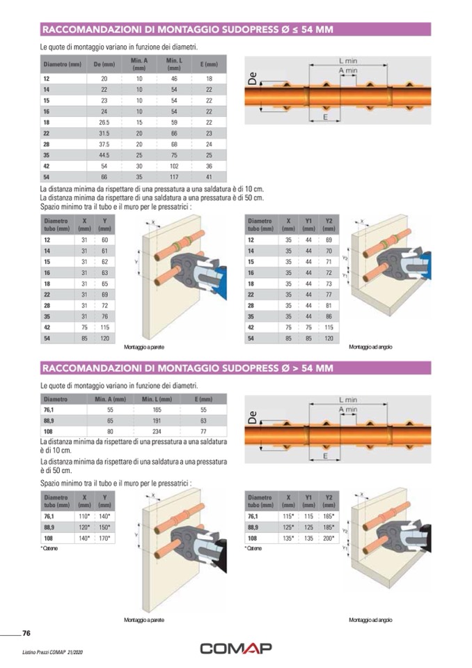 RACCOMANDAZIONI DI MONTAGGIO SUDOPRESS Ø ≤ 54 MM