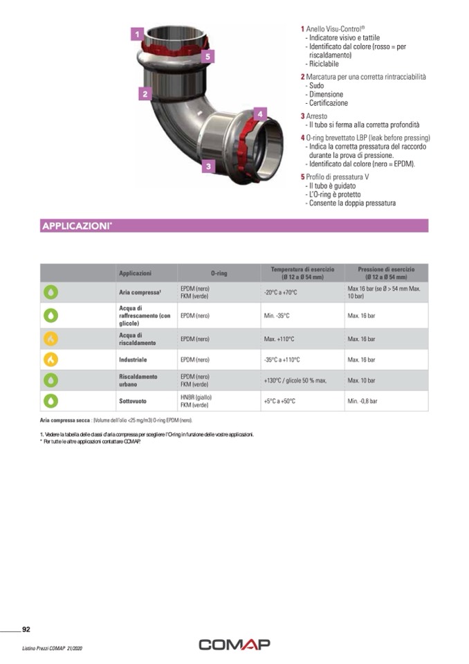 1. Vedere la tabella delle classi d’aria compressa per scegliere l’O-ring in funzione delle vostre applicazioni.