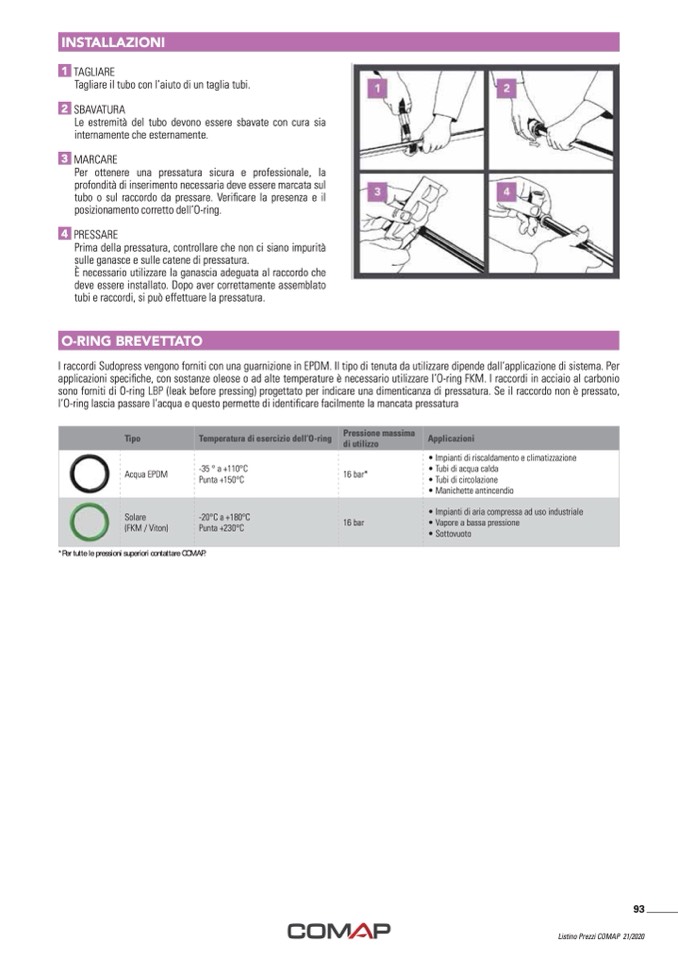sono forniti di O-ring LBP (leak before pressing) progettato per indicare una dimenticanza di pressatura. Se il raccordo non è pressato,