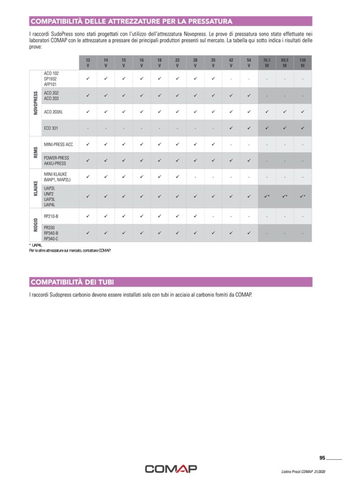I raccordi Sudopress carbonio devono essere installati solo con tubi in acciaio al carbonio forniti da COMAP.