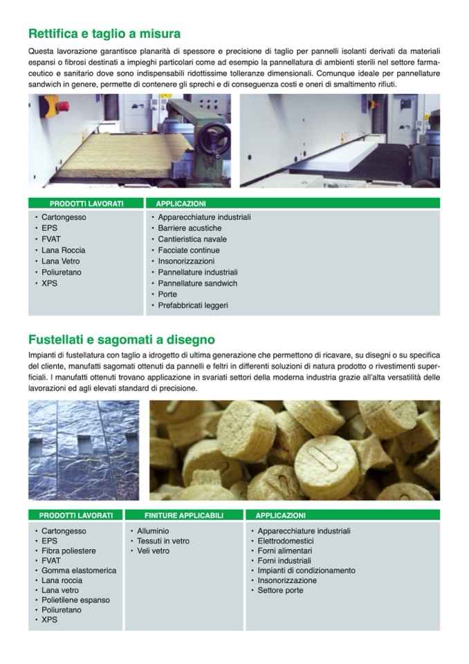 Questa lavorazione garantisce planarità di spessore e precisione di taglio per pannelli isolanti derivati da materiali