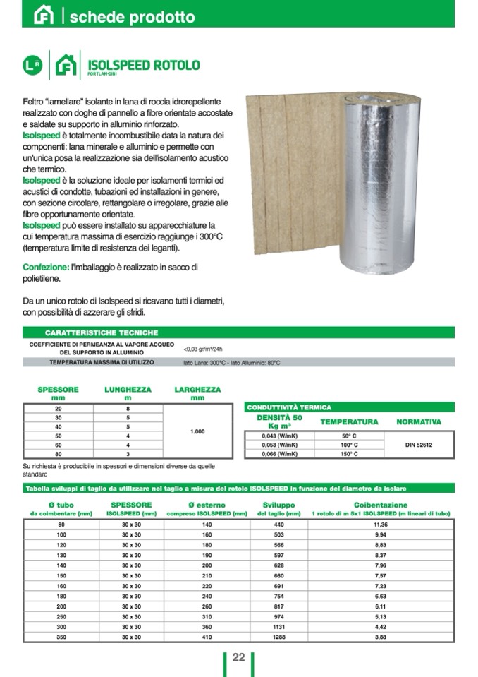 Tabella sviluppi di taglio da utilizzare nel taglio a misura del rotolo ISOLSPEED in funzione del diametro da isolare
