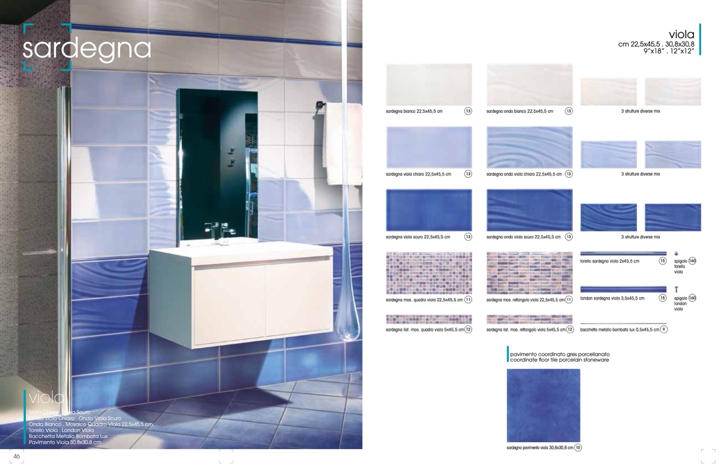 sardegna onda viola scuro 22,5x45,5 cm