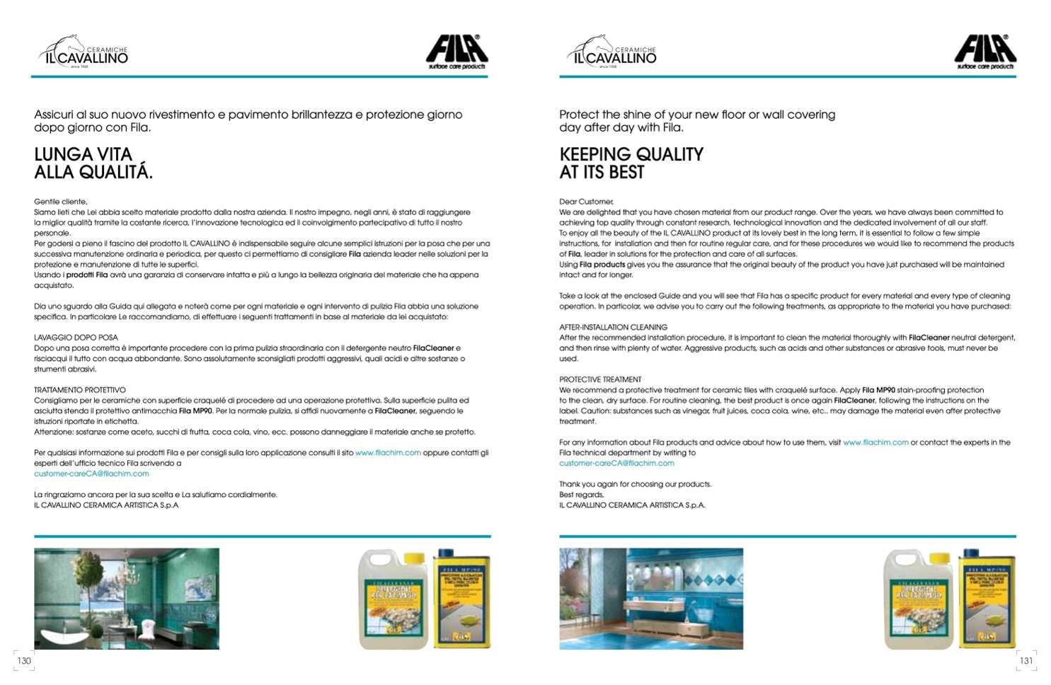 Per qualsiasi informazione sui prodotti Fila e per consigli sulla loro applicazione consulti il sito www.filachim.com oppure contatti gli
