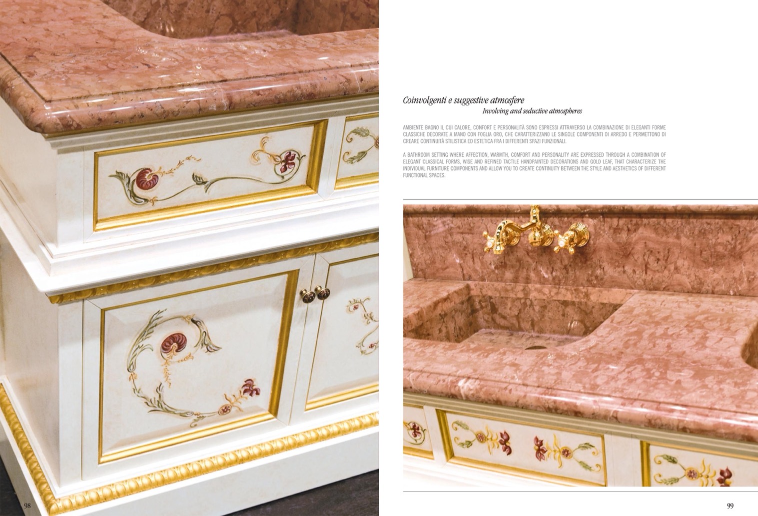 CLASSICHE DECORATE A MANO CON FOGLIA ORO, CHE CARATTERIZZANO LE SINGOLE COMPONENTI DI ARREDO E PERMETTONO DI