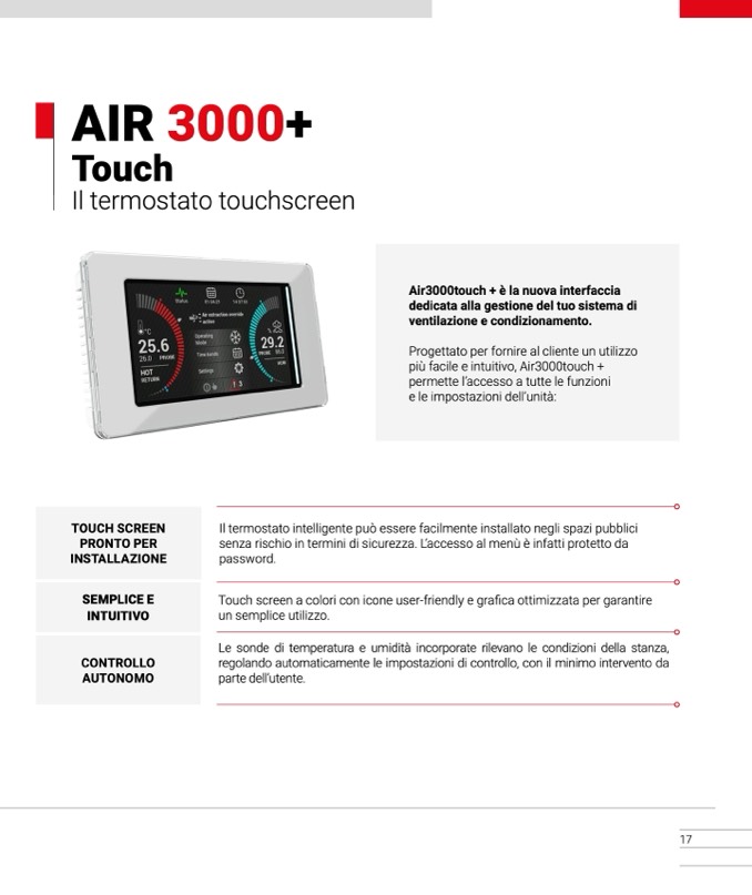 Touch screen a colori con icone user-friendly e grafica ottimizzata per garantire