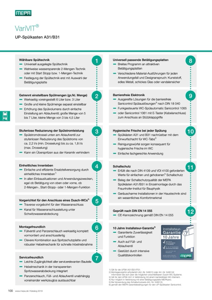 6) gemäß den MEPA Garantiebedingungen für den UP-Spülkasten Sanicontrol.