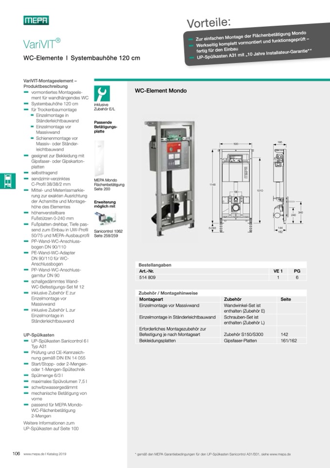 * gemäß den MEPA Garantiebedingungen für den UP-Spülkasten Sanicontrol A31/B31, siehe www.mepa.de