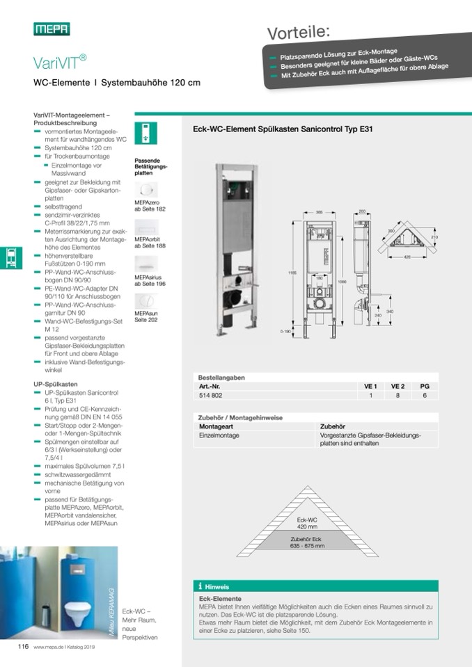 Eck-WC-Element Spülkasten Sanicontrol Typ E31