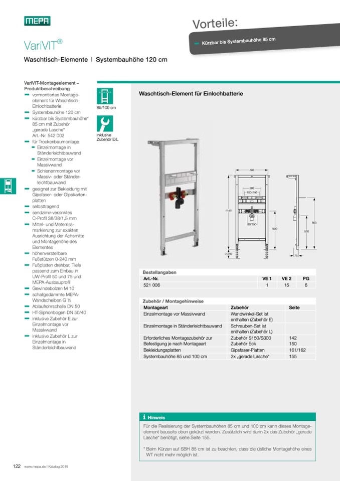Systembauhöhe 85 und 100 cm