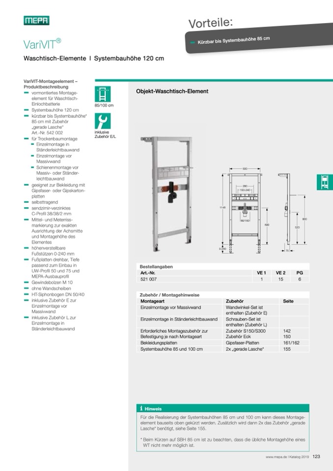 element bauseits oben gekürzt werden. Zusätzlich wird dann 2x das Zubehör „gerade