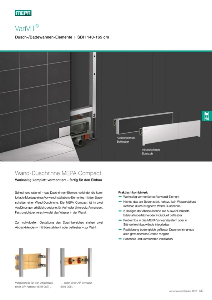 schaften einer Wand-Duschrinne. Die MEPA Compact ist in zwei