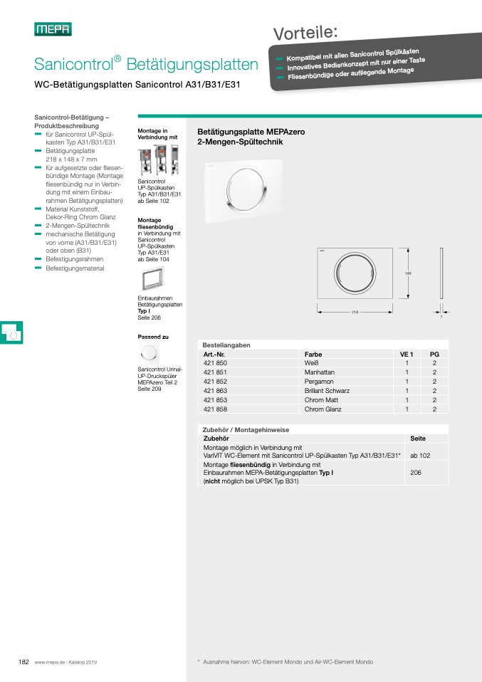 * Ausnahme hiervon: WC-Element Mondo und Air-WC-Element Mondo