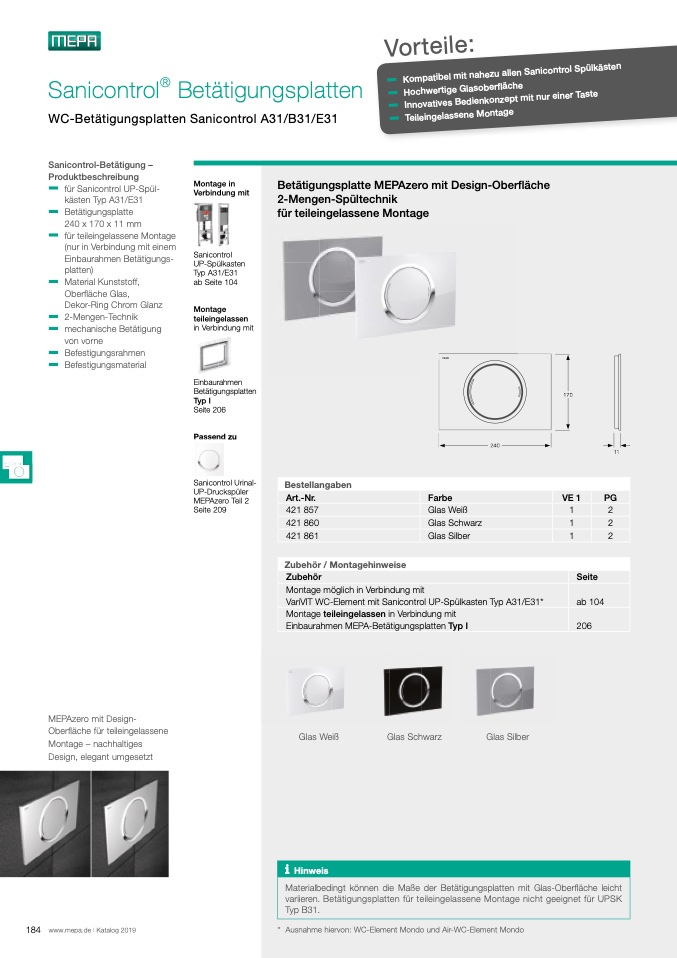 variieren. Betätigungsplatten für teileingelassene Montage nicht geeignet für UPSK