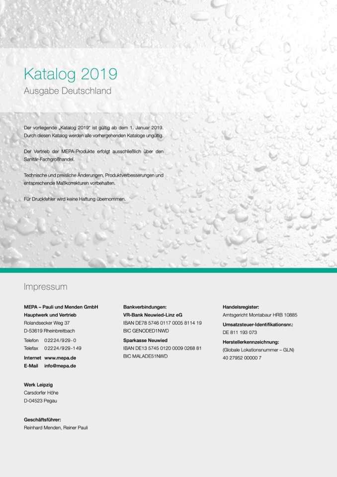 Der vorliegende „Katalog 2019“ ist gültig ab dem 1. Januar 2019.
