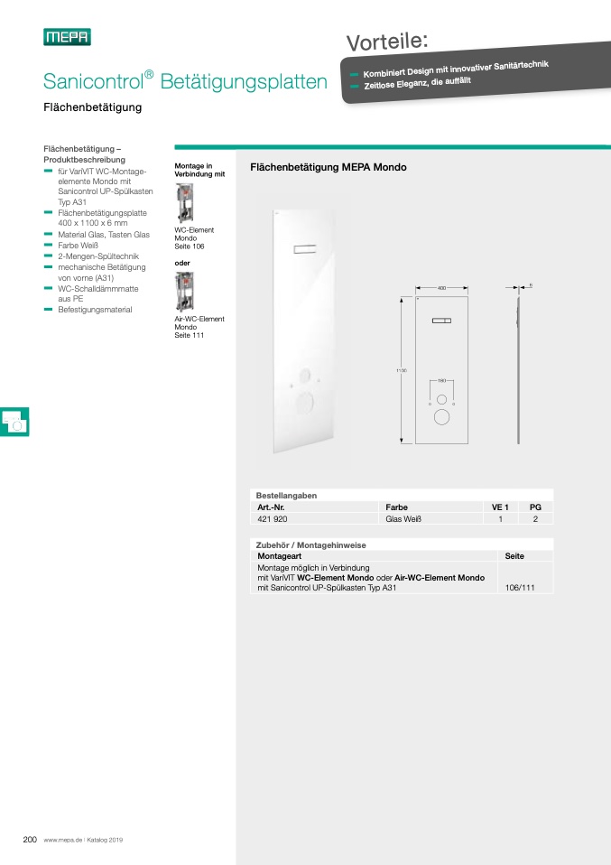 Nicht geeignet für Betätigungsplatte MEPAorbit vandalensicher und MEPAsun.