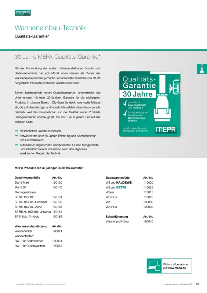 MEPA Produkte mit 30-jähriger Qualitäts-Garantie*:
