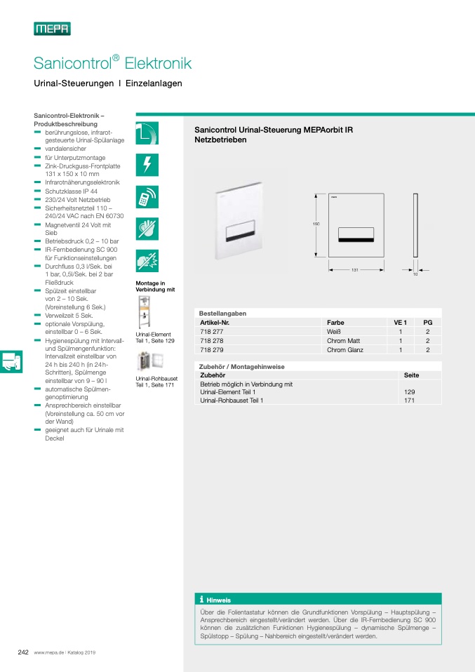 Sanicontrol Urinal-Steuerung MEPAorbit IR