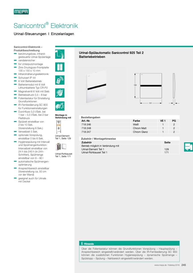 Urinal-Spülautomatic Sanicontrol 925 Teil 2