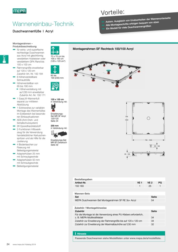 MEPA Duschwannen-Set Montagerahmen SF RE 3s+ Acryl