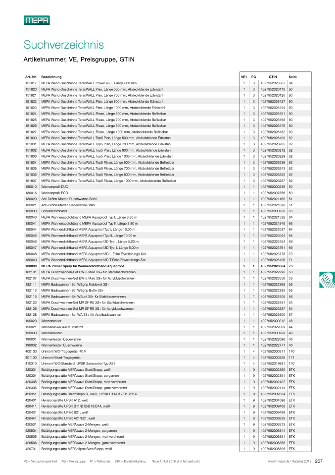 VE = Verpackungseinheit PG = Preisgruppe N* = Nettopreis ETK = Ersatzteilkatalog