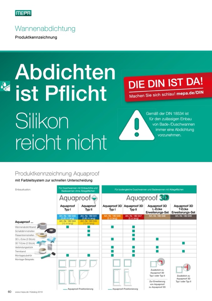 Für bodengleiche Duschwannen und Badewannen mit Ablageflächen