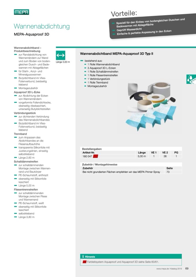 Wannenabdichtband MEPA-Aquaproof 3D Typ II