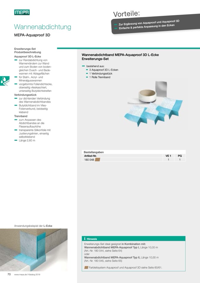 Wannenabdichtband MEPA-Aquaproof 3D L-Ecke