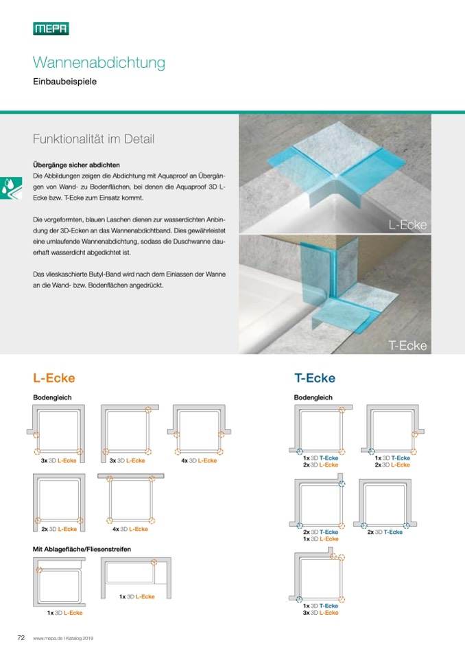 gen von Wand- zu Bodenflächen, bei denen die Aquaproof 3D L-