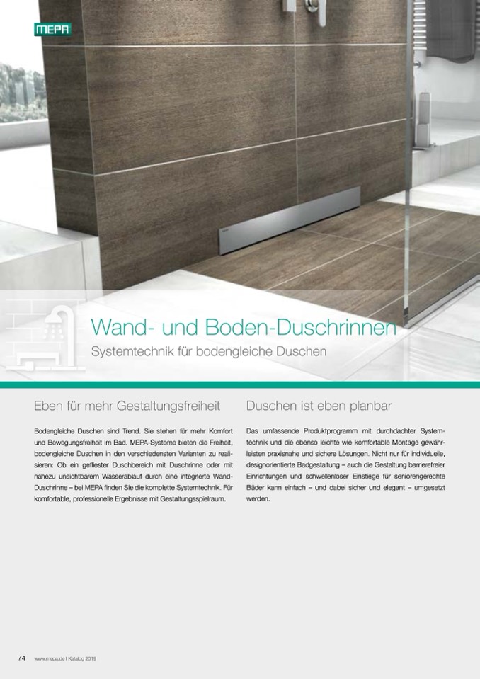 Duschrinne – bei MEPA finden Sie die komplette Systemtechnik. Für