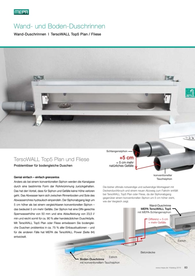 bei TersoWALL Top5 Plan oder Fliese, da der Siphonabgang