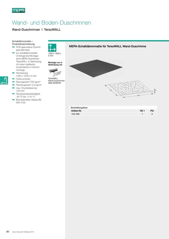 MEPA-Schalldämmmatte für TersoWALL Wand-Duschrinne