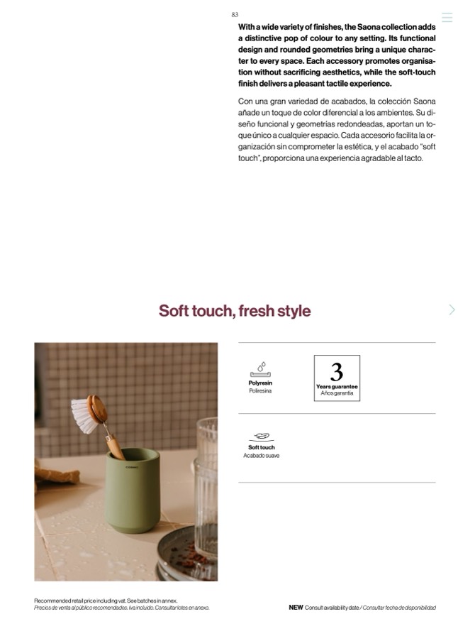 With a wide variety of finishes, the Saona collection adds