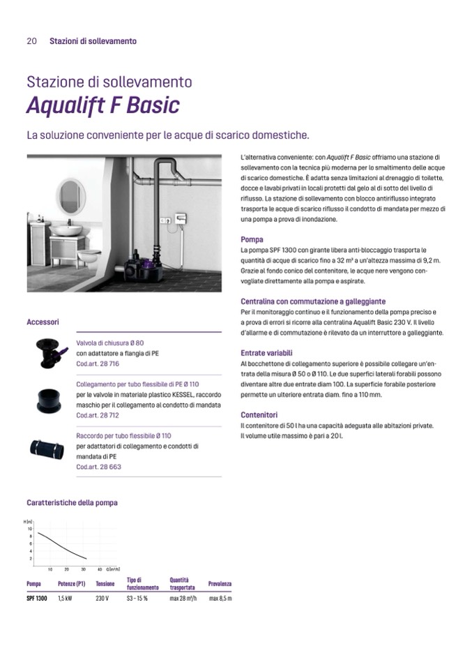 quantità di acque di scarico fino a 32 m3 a un’altezza massima di 9,2 m.