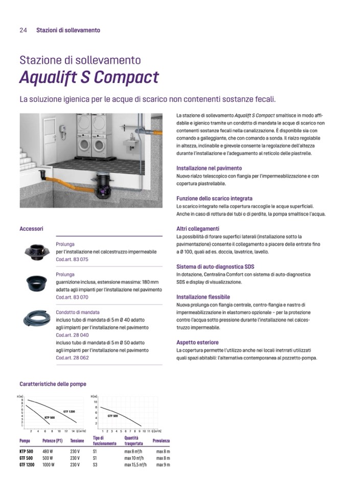 La stazione di sollevamento Aqualift S Compact smaltisce in modo affi-