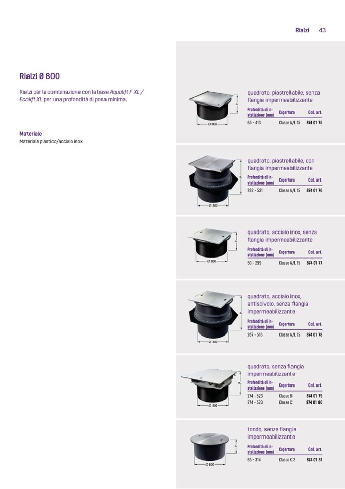 Rialzi per la combinazione con la base Aqualift F XL /