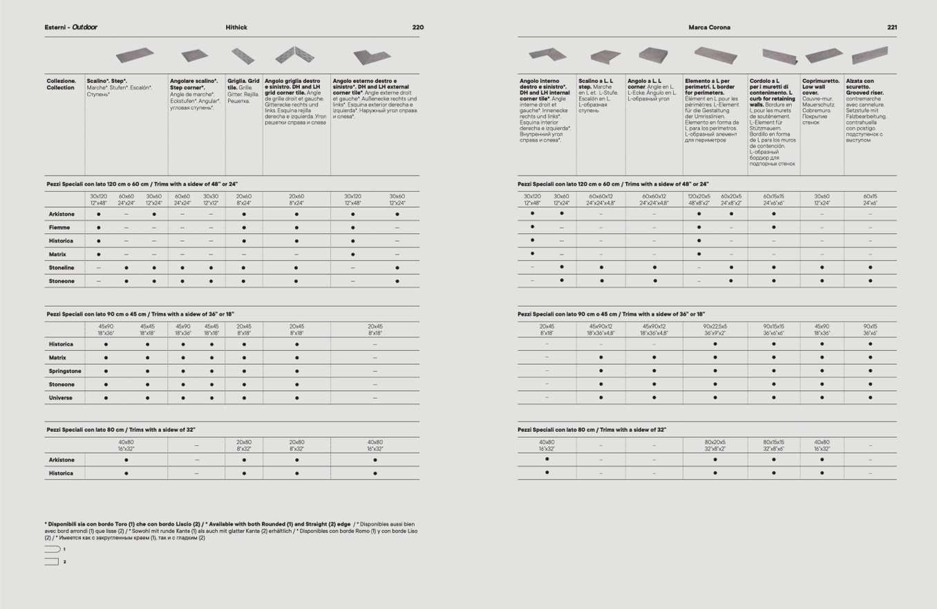 Pezzi Speciali con lato 80 cm / Trims with a sidew of 32”