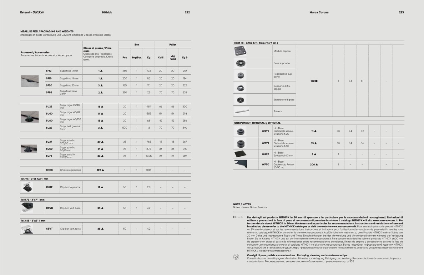 colocación, se recomienda consultar el catálogo HITHICK y el sitio www.marcacorona.it. Более подробная информация об изделиях HITHICK