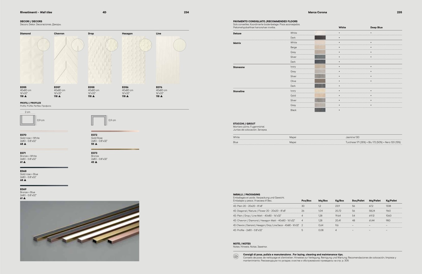 Consigli di posa, pulizia e manutenzione . For laying, cleaning and maintenance tips.