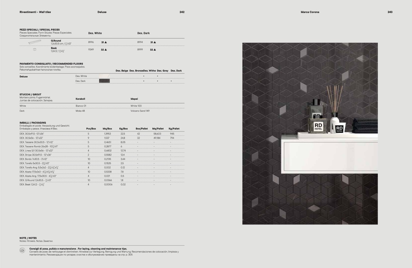 Consigli di posa, pulizia e manutenzione . For laying, cleaning and maintenance tips.