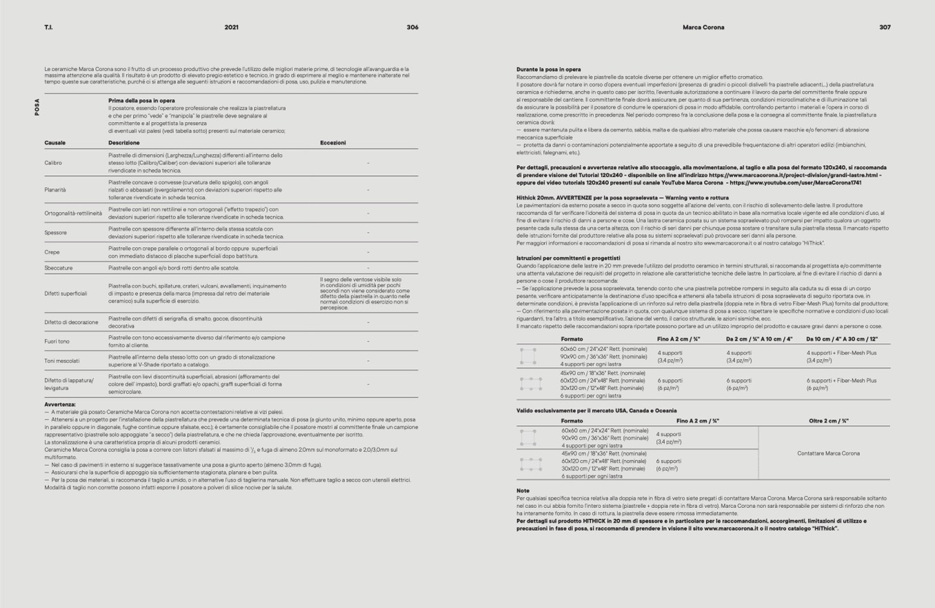 precauzioni in fase di posa, si raccomanda di prendere in visione il sito www.marcacorona.it o il nostro catalogo HiThick”.