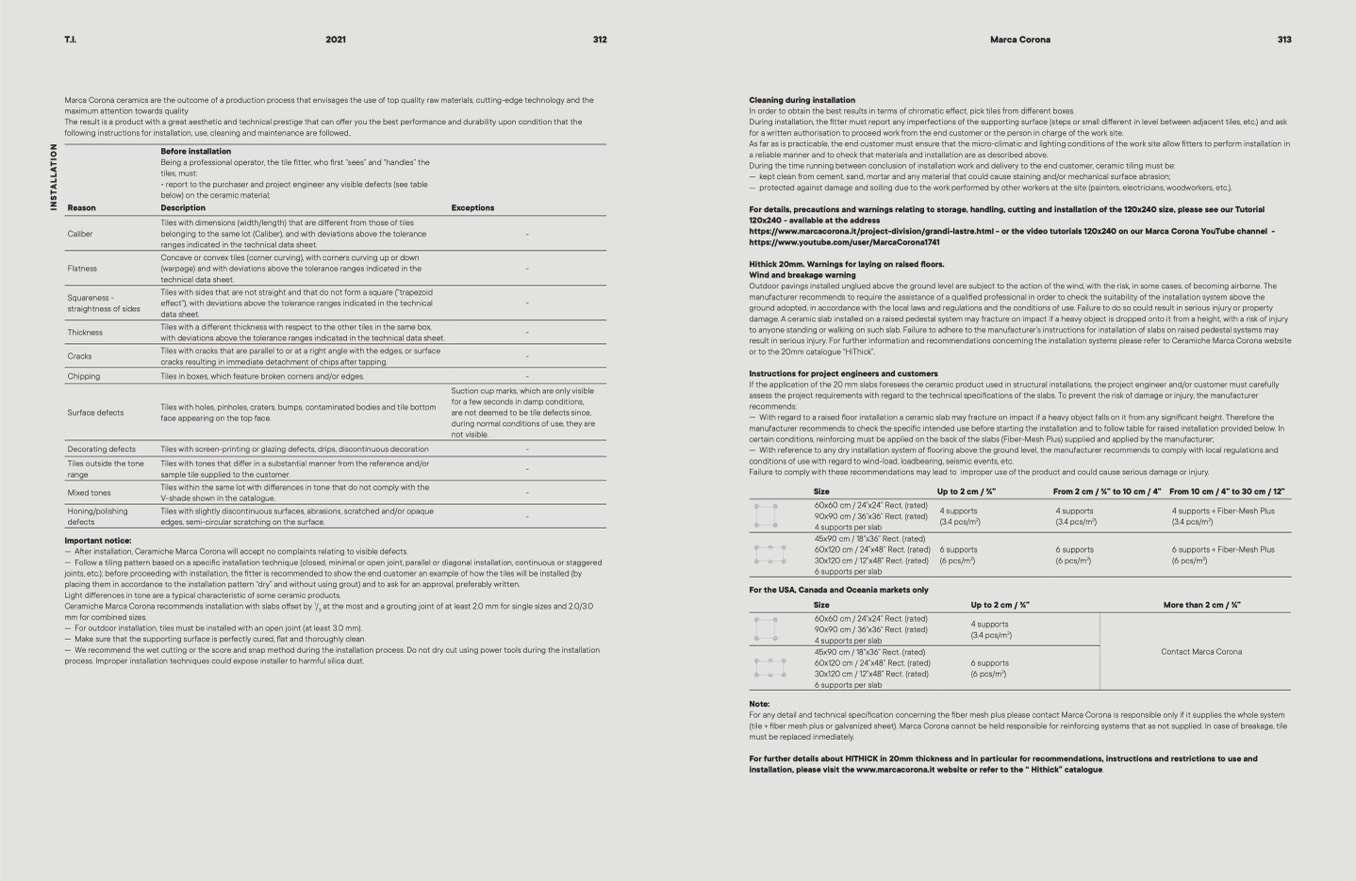 result in serious injury. For further information and recommendations concerning the installation systems please refer to Ceramiche Marca Corona website