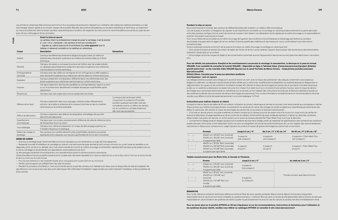 — Une fois le carrelage posé, Ceramiche Marca Corona n’accepte aucune réclamation au sujet de vices apparents.