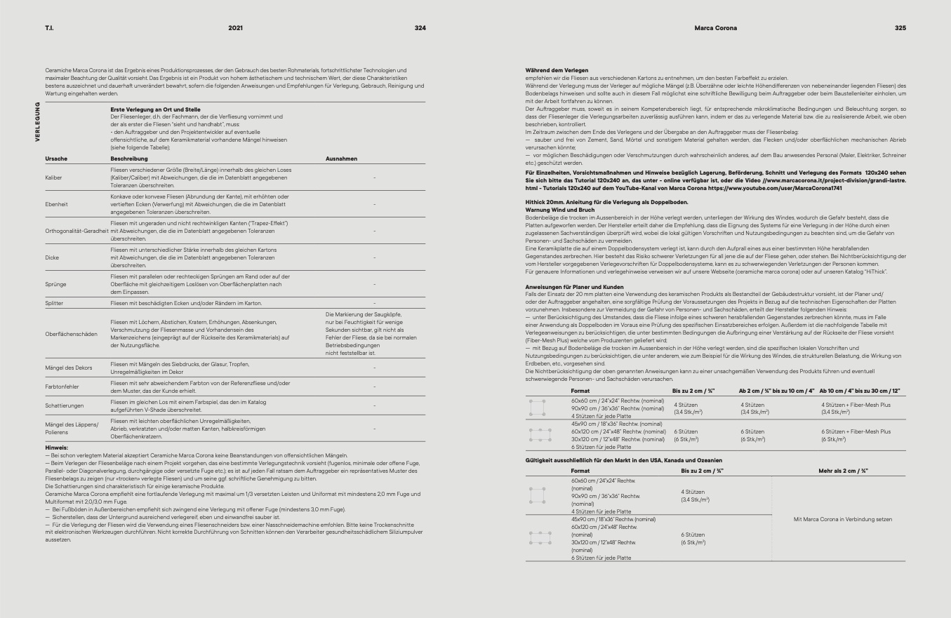 Für genauere Informationen und verlegehinweise verweisen wir auf unsere Webseite (ceramiche marca corona) oder auf unseren atalog HiThick”.