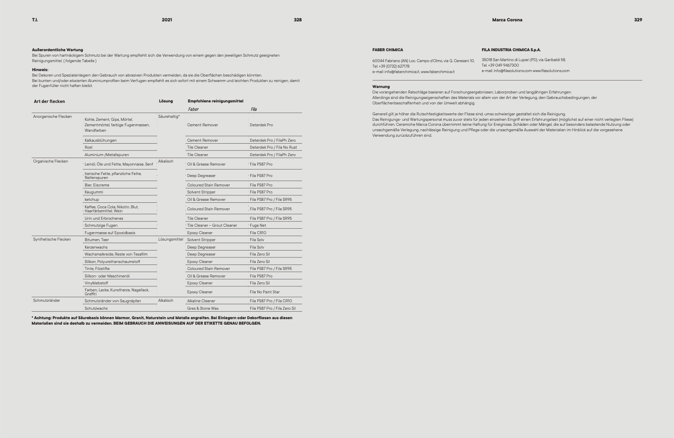 durchführen. Ceramiche Marca Corona übernimmt keine Haung für Ereignisse, Schäden oder Mängel, die auf besonders belastende Nutzung oder