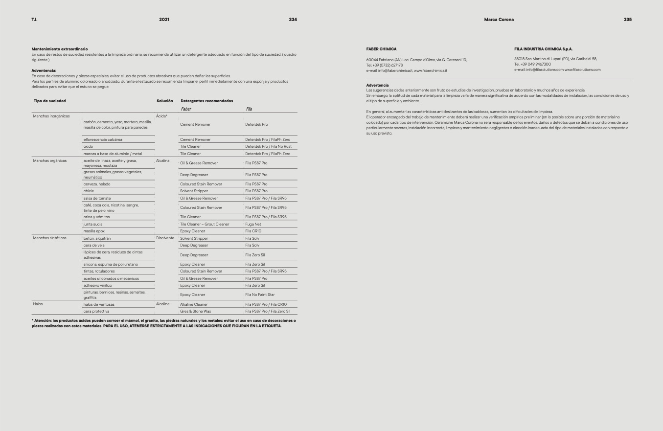 colocado) por cada tipo de intervención. Ceramiche Marca Corona no ser responsable de los eventos, daos o defectos que se deban a condiciones de uso