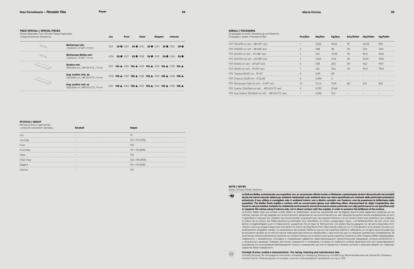 Consigli di posa, pulizia e manutenzione . For laying, cleaning and maintenance tips.