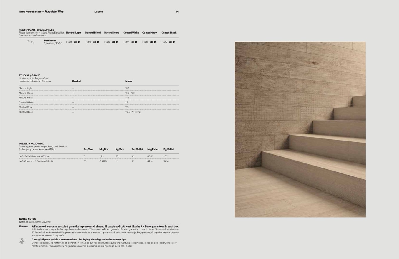 Consigli di posa, pulizia e manutenzione . For laying, cleaning and maintenance tips.